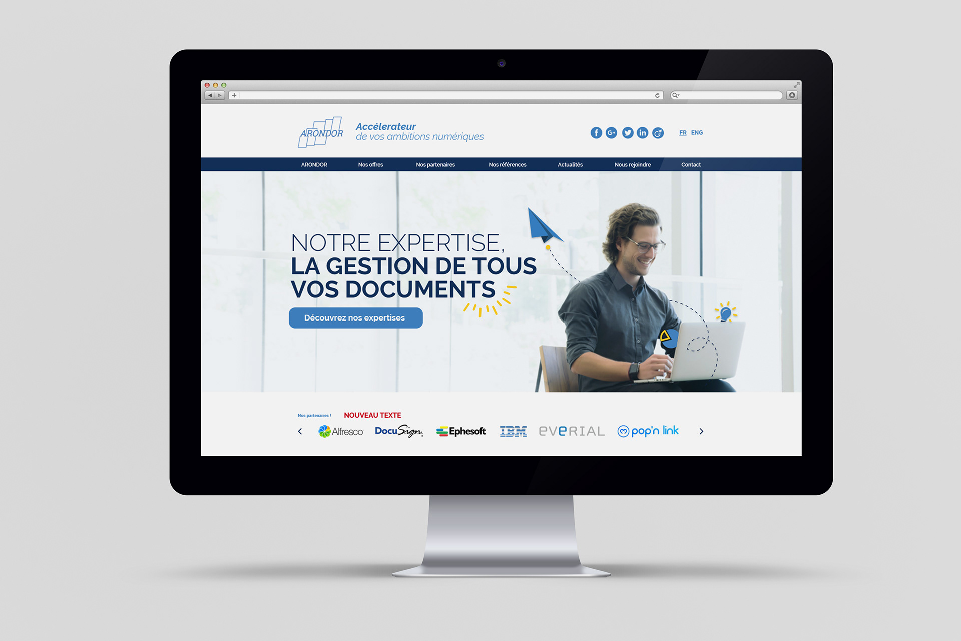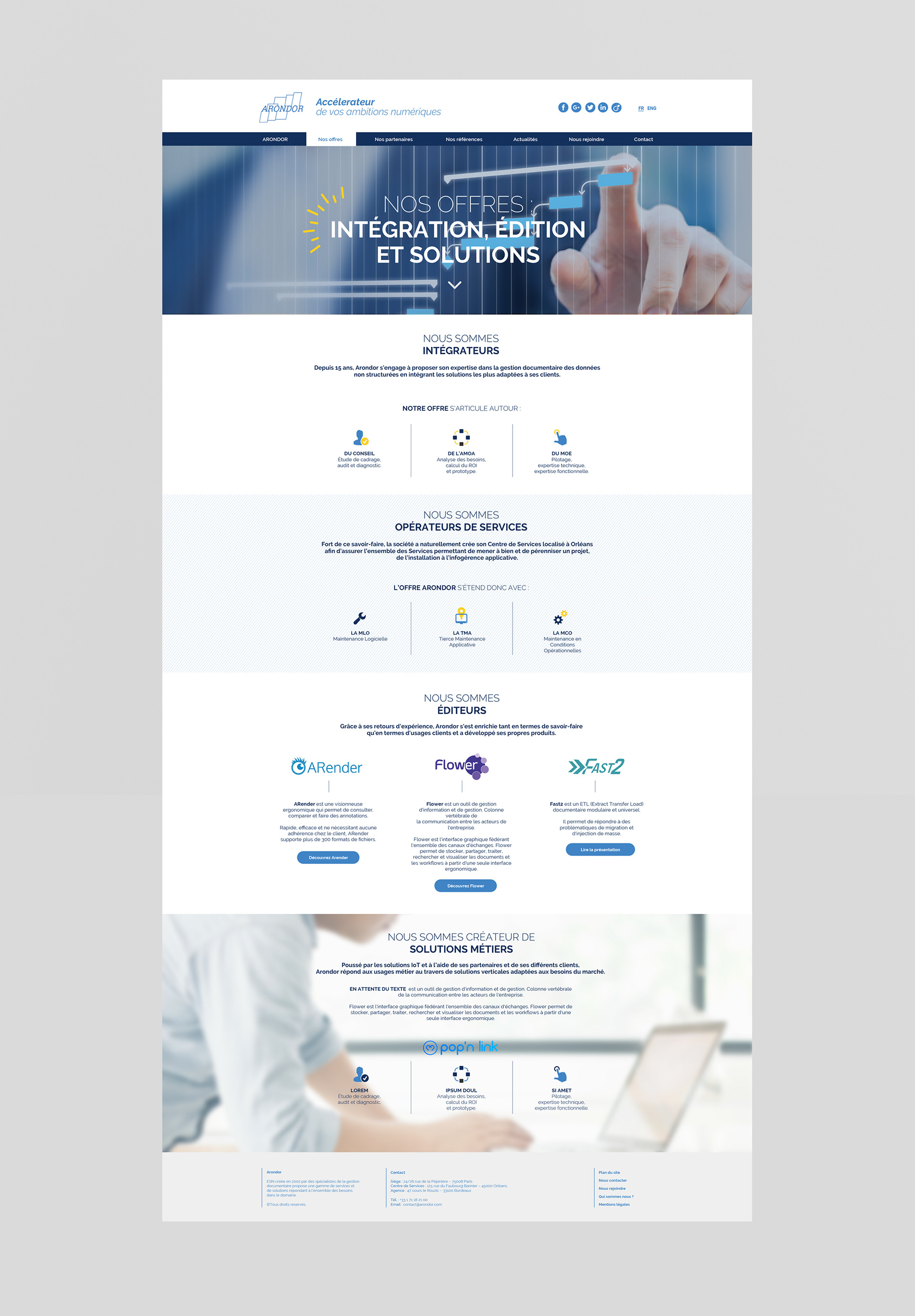 Conception UX et graphique du site Internet Arondor en collaboration avec le bureau Cible Blanche Design.
