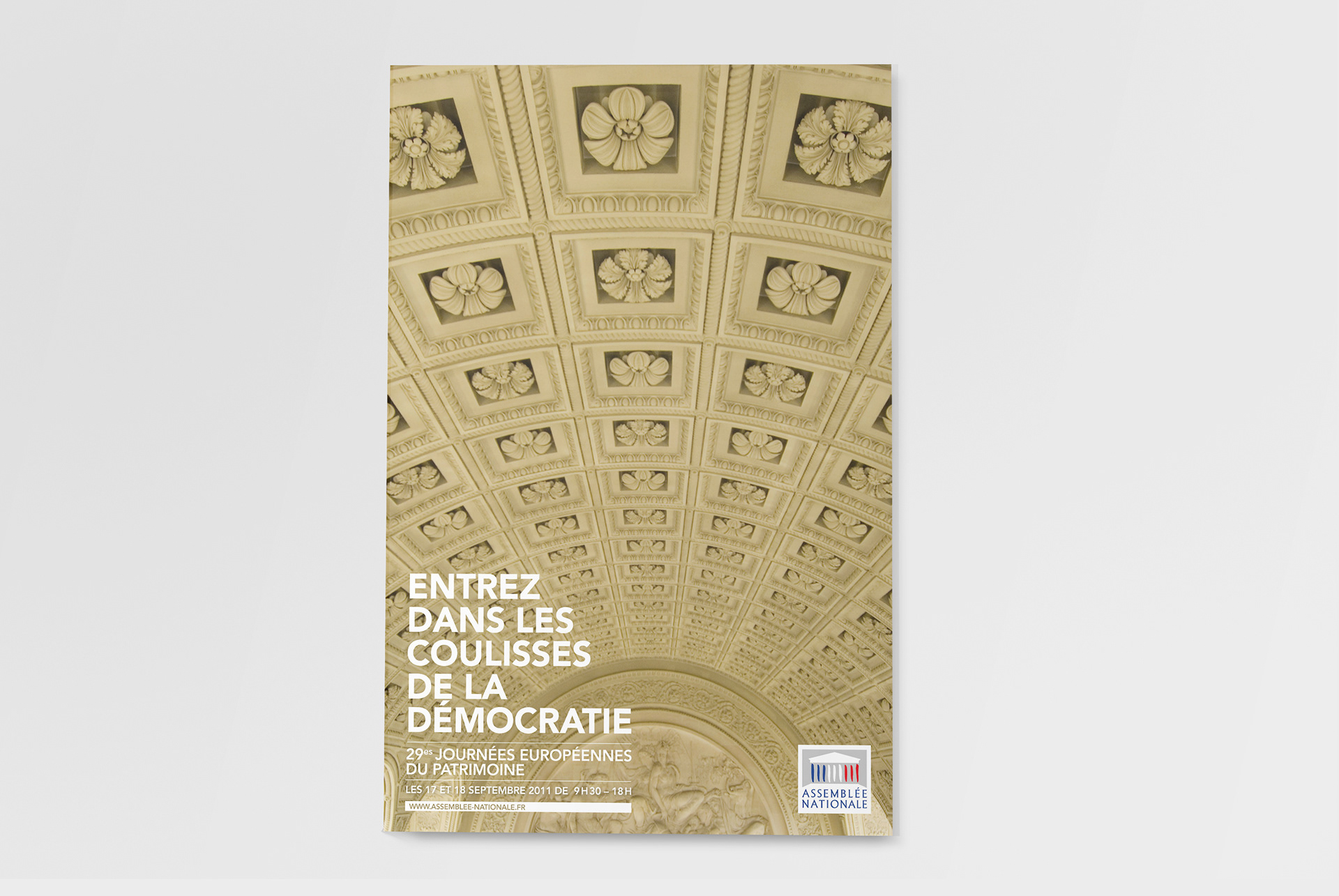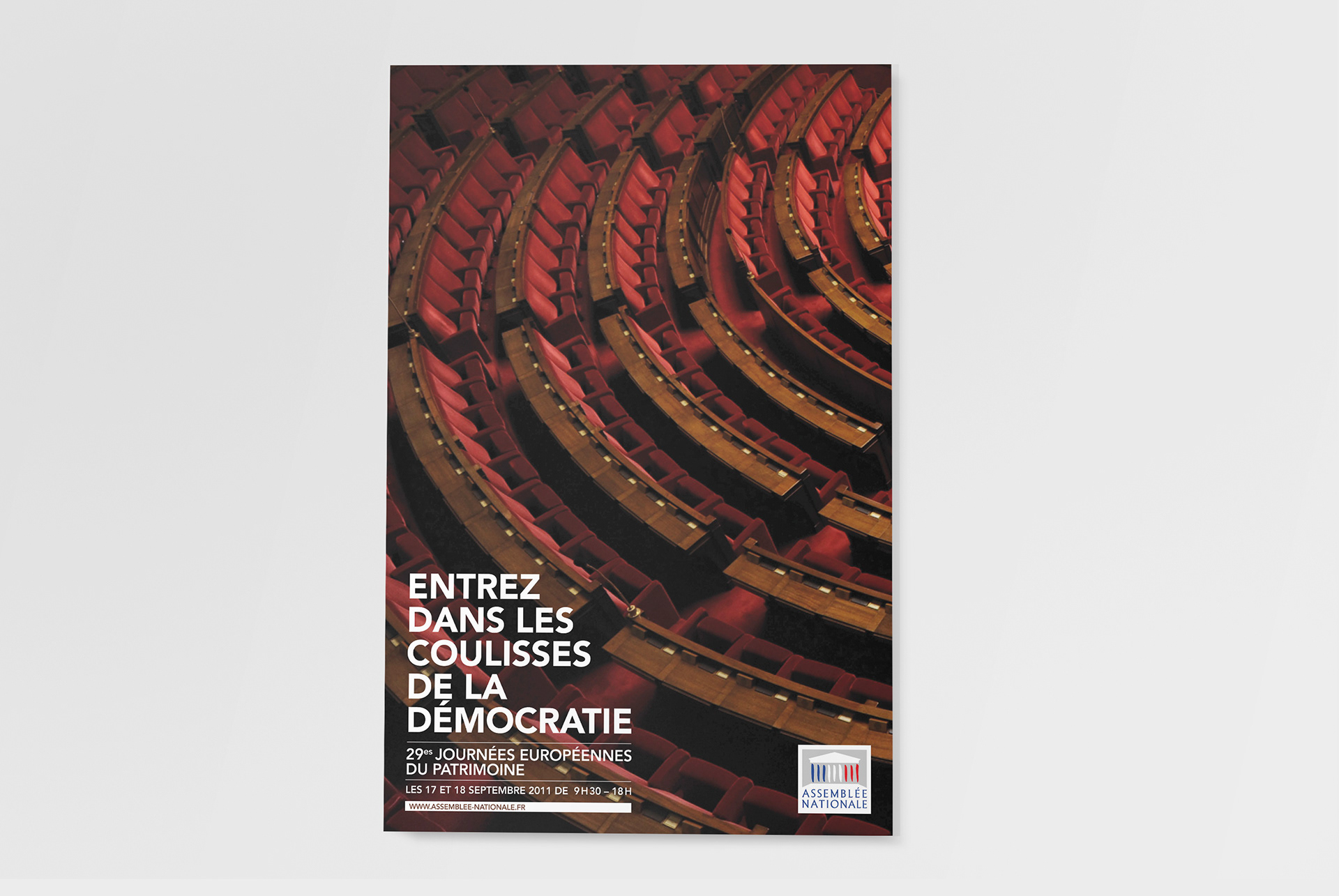 Conception et réalisation d'une campagne d'affichage concernant les journées du patrimoine à l'Assemblée Nationale. Travail réalisé au sein du Groupe Rouge-Vif (Paris).