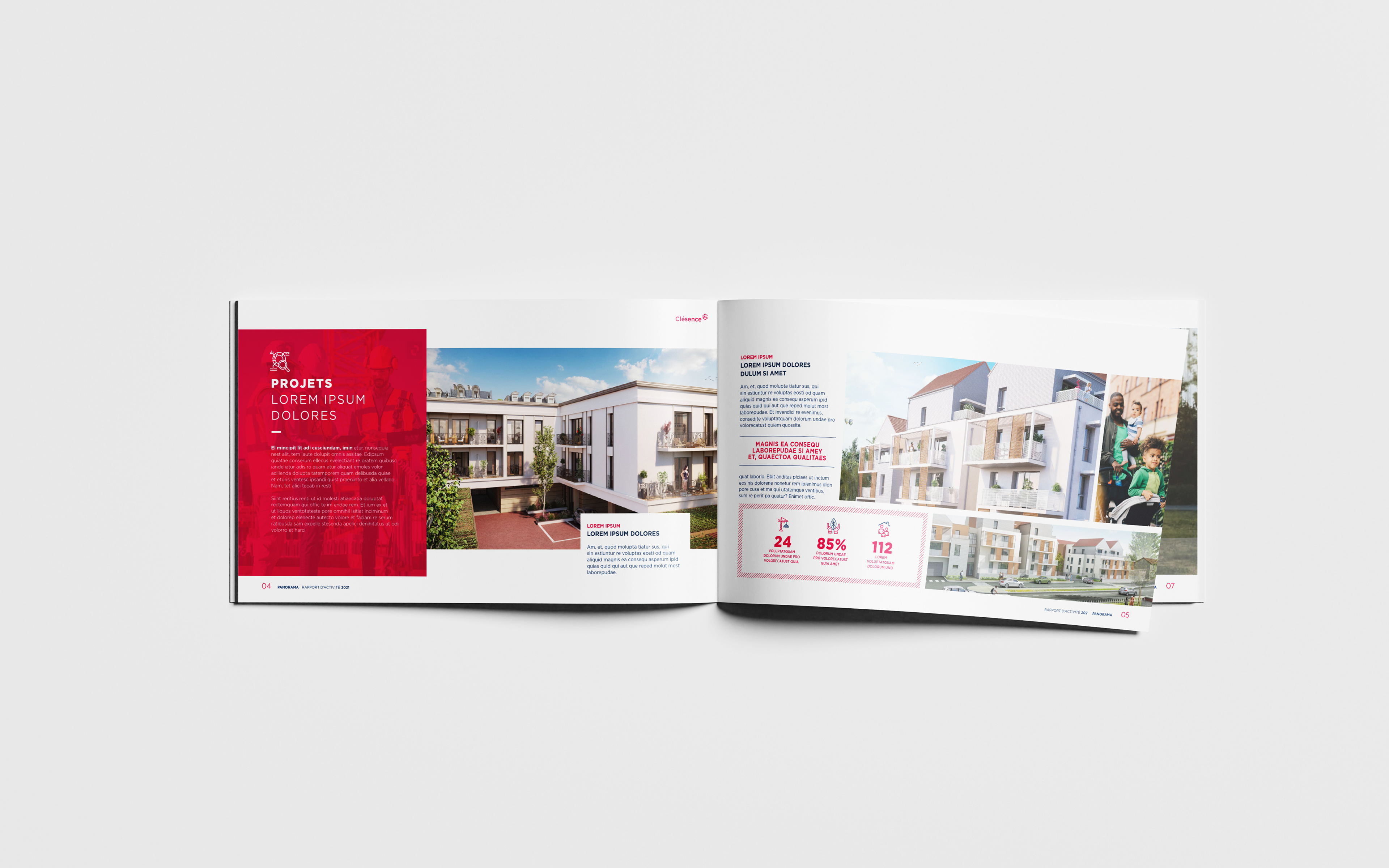 Réalisée en collaboration avec l'agence lilloise JBL et Cie, la conception de deux pistes pour le rapport d'activité de Clésence (Groupe Action Logement) a abouti. La piste ci-dessous, sélectionnée par le client, a été conçue dans un format panoramique afin de mettre en avant les projets de la société.