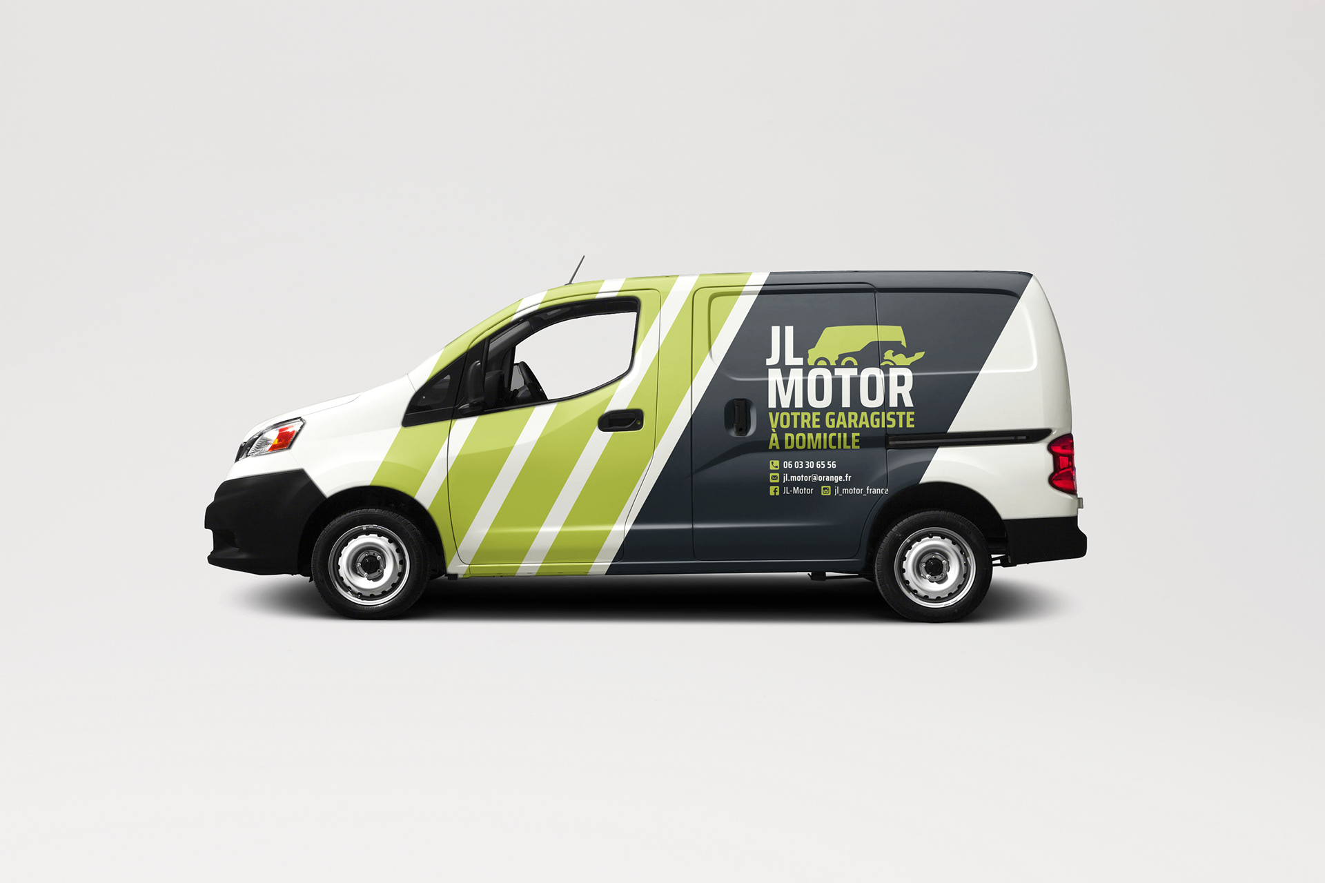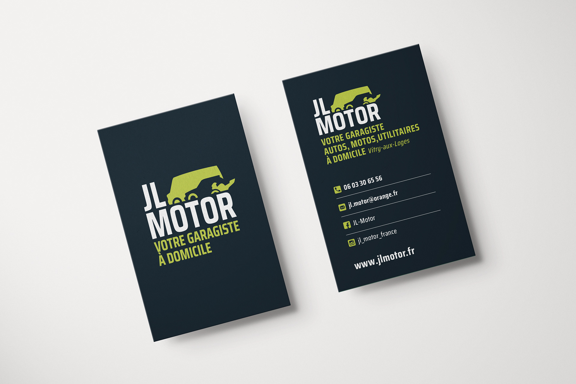 Création de l'identité graphique pour JL Motor. L'objectif, montrer en toute simplicité l'offre de l'entreprise tout en maximisant la visibilité.