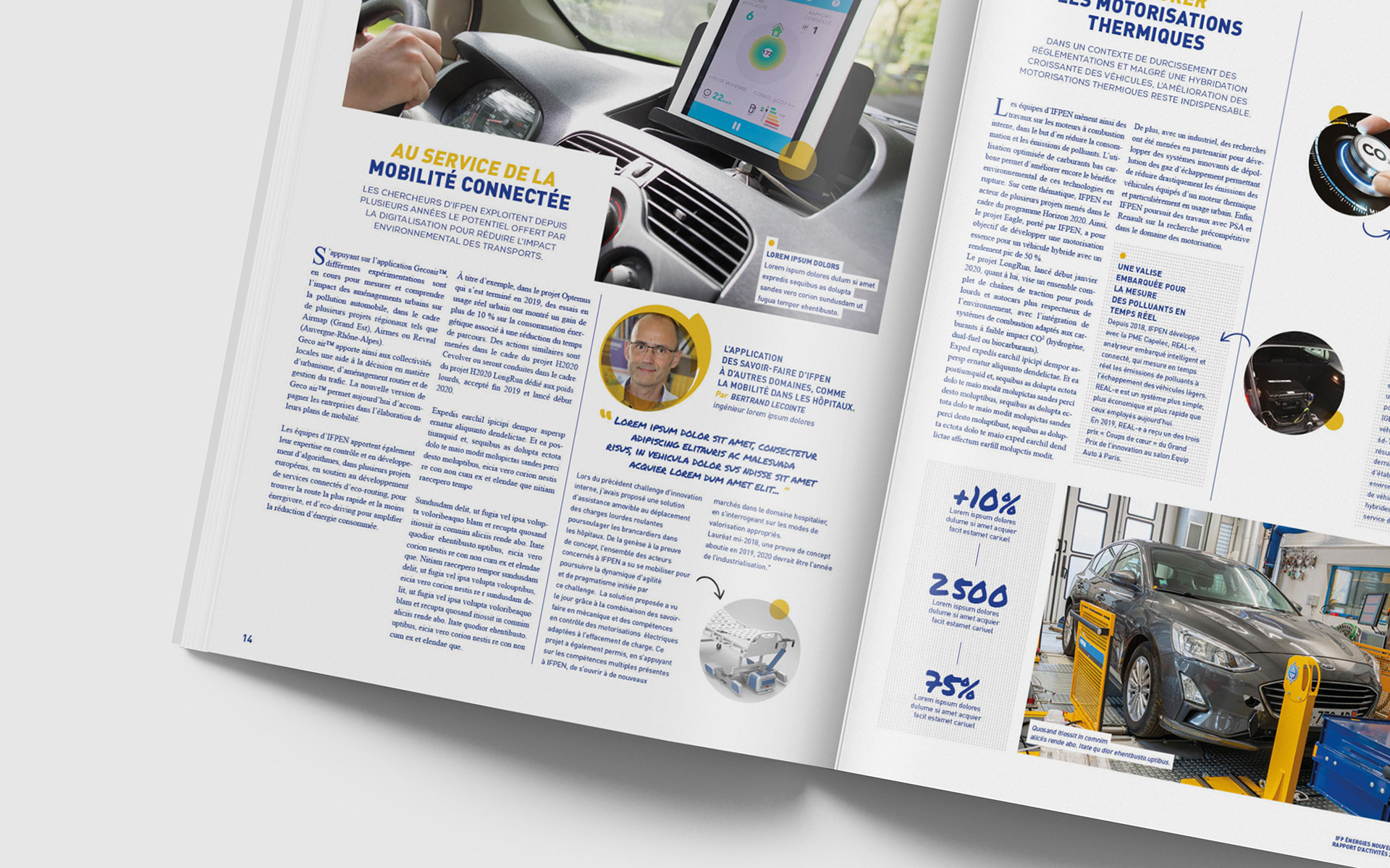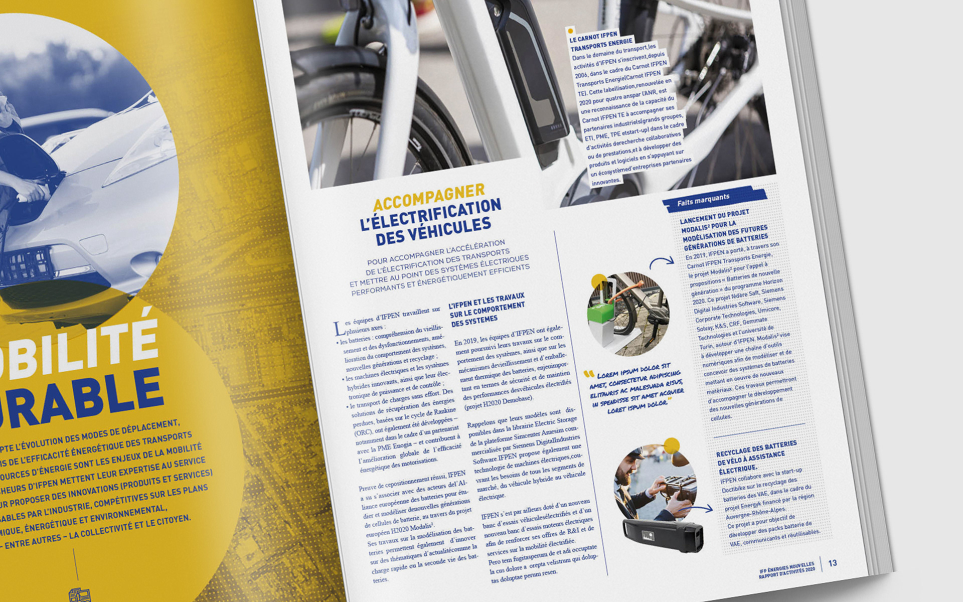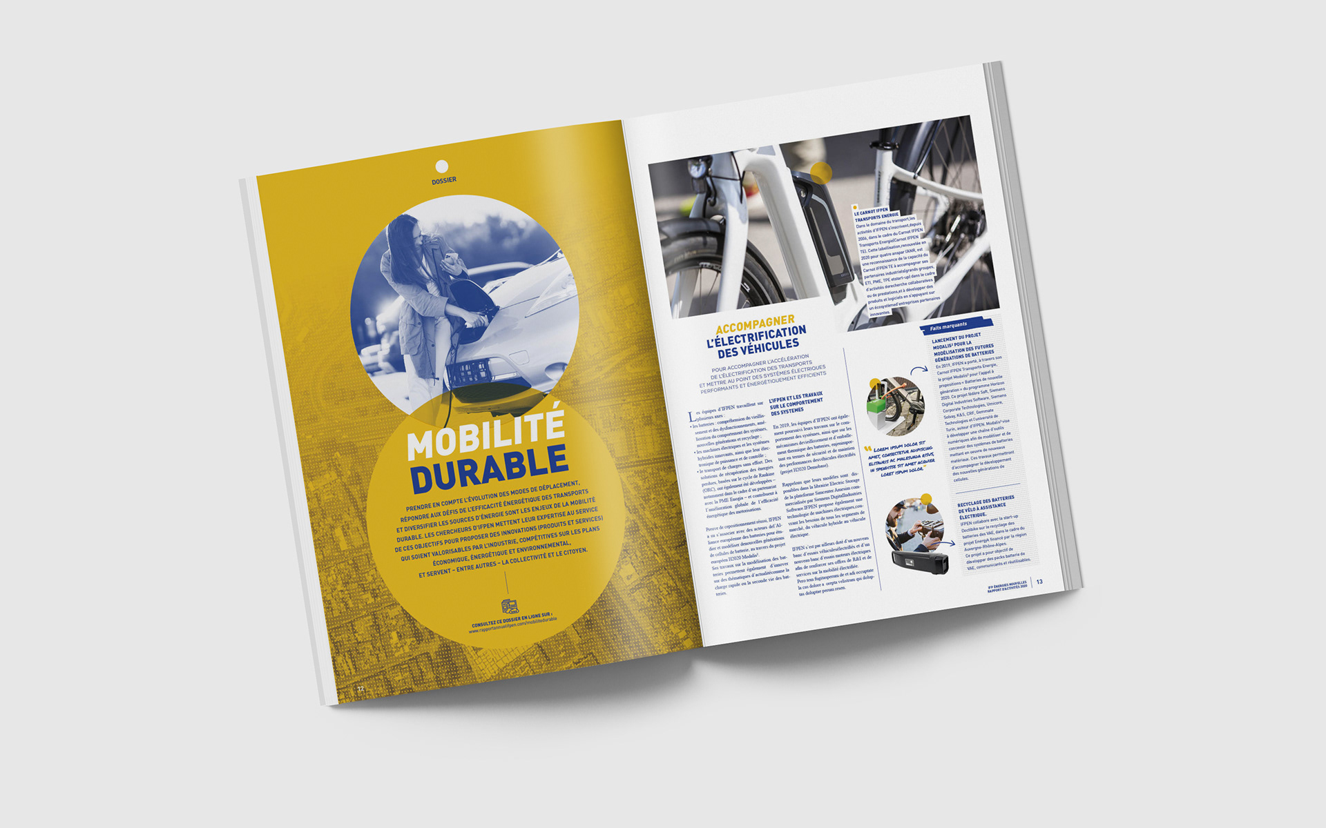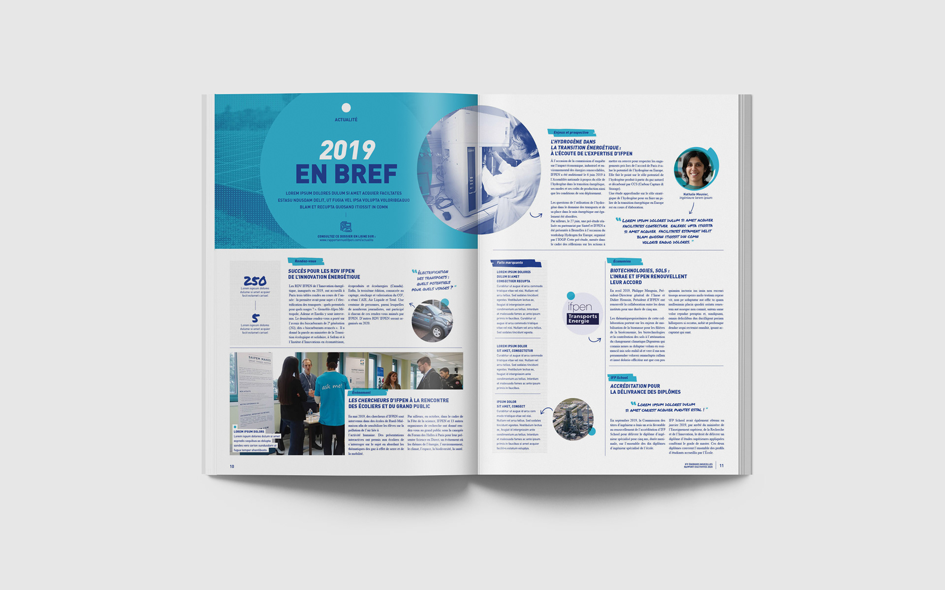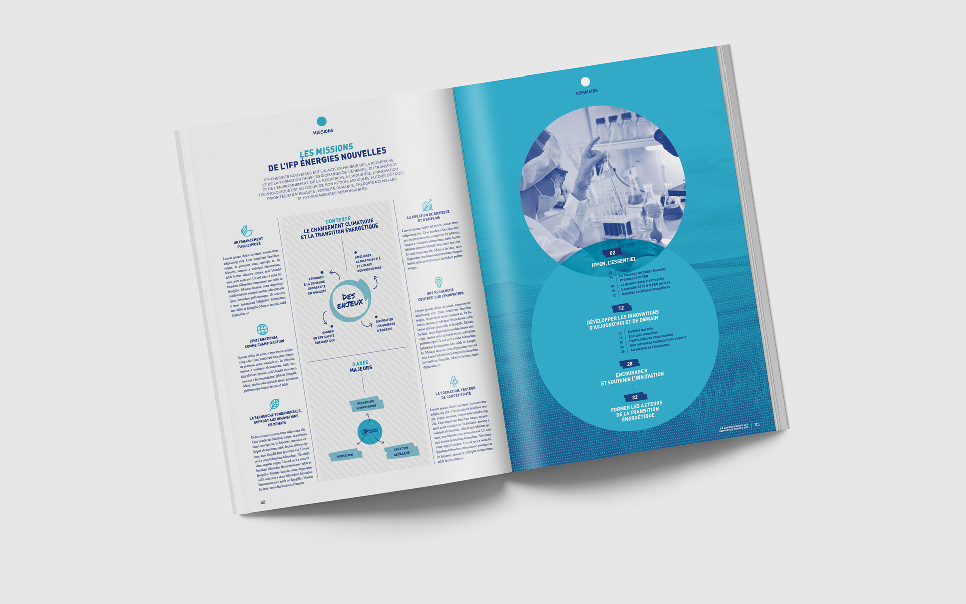 Dans le cadre d'une réponse d'appel d'offre, conception graphique du rapport annuel 2020 de IFP Énergies Nouvelles en collaboration avec l'agence Bathyscaphe.