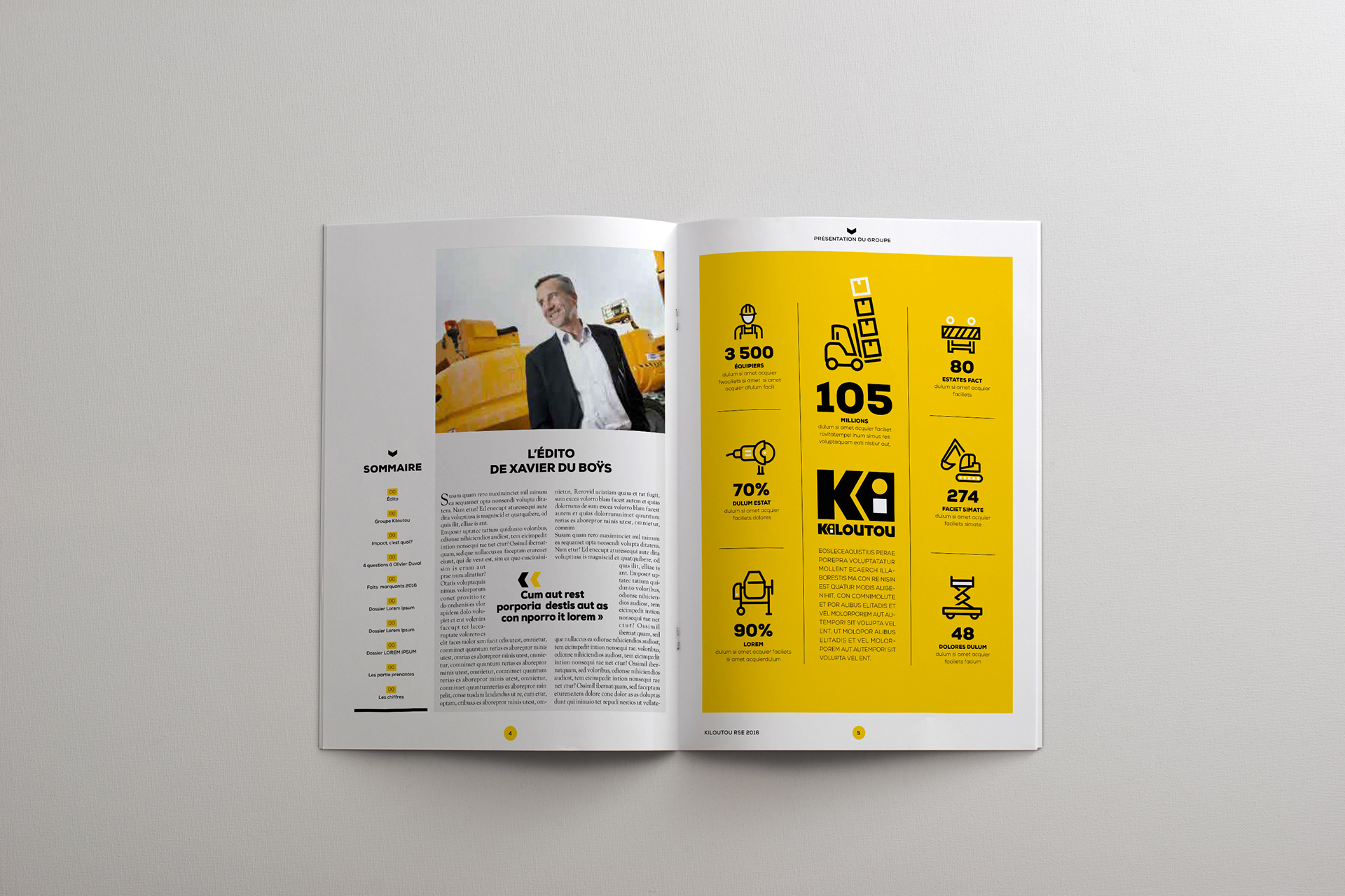 Conception du rapport annuel 2016 de Kiloutou en collaboration avec l'agence JBL&Cie.