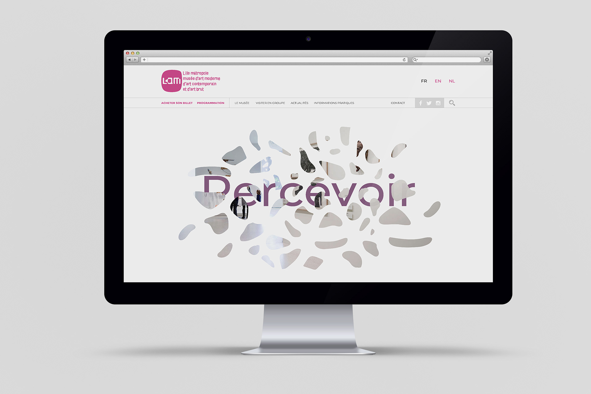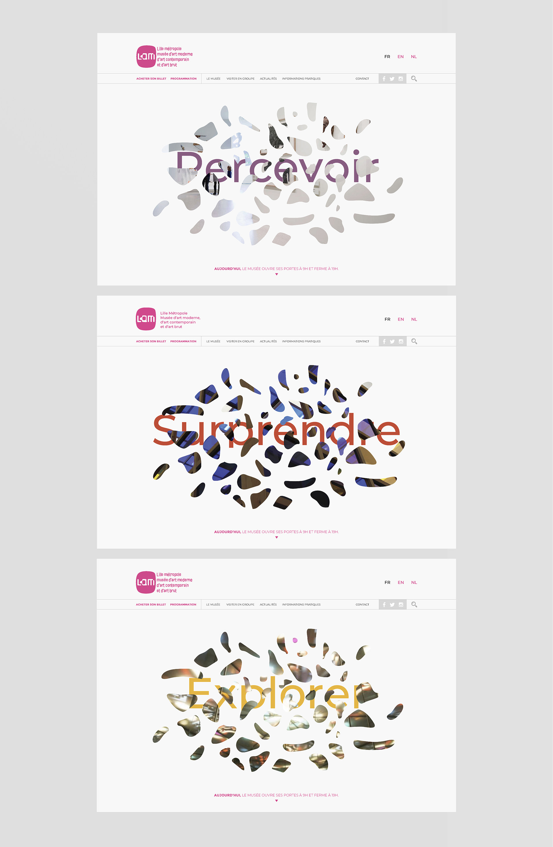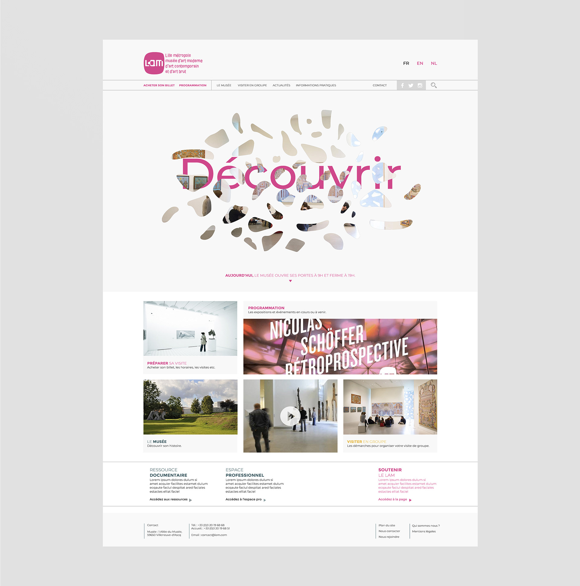 Refonte du site internet du LAM - Musée d'art moderne de Lille Métropole en collaboration avec le bureau Cible Blanche Design. Cette piste s'inspire des codes architecturaux du musée tout en invitant l'utilisateur à la découverte du lieu.