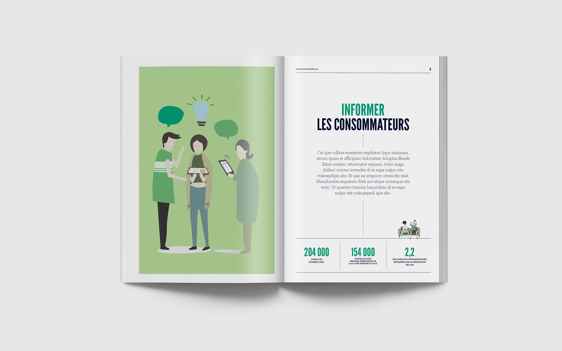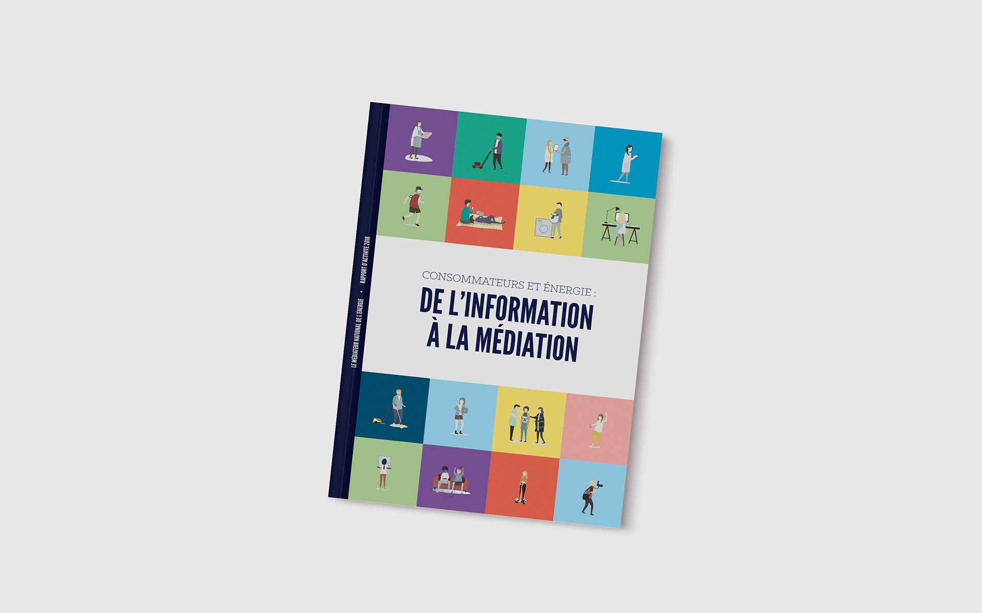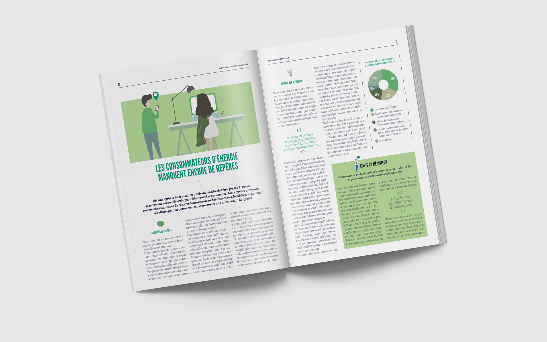 Dans le cadre d'une réponse d'appel d'offre, conception du rapport d'activité 2018 du Médiateur de l'Énergie en collaboration avec l'agence Caillé Associés.