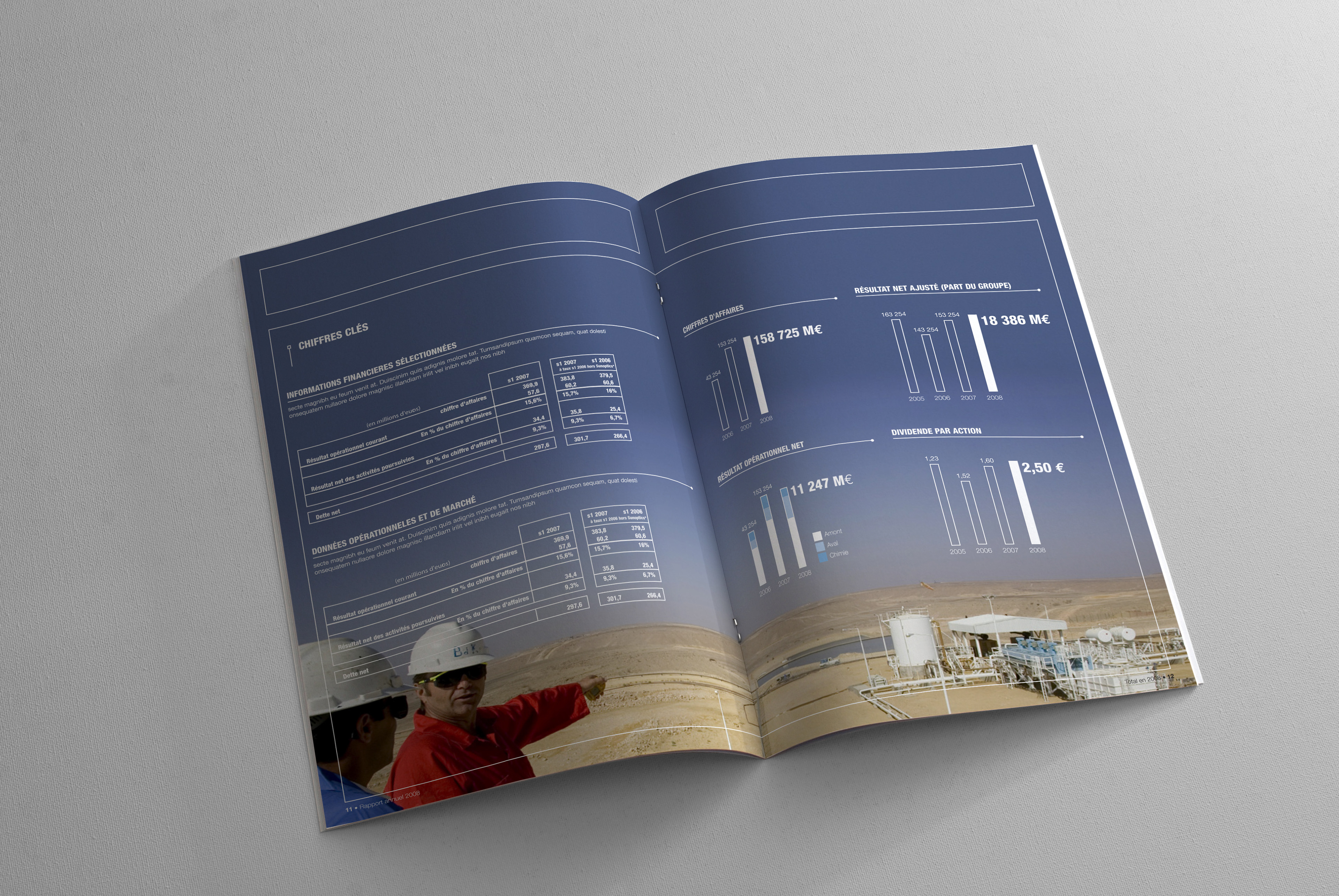 Conception, création et suivi de production du Rapport Annuel du Groupe Total au sein de l'agence Harrison&Wolf (Paris).